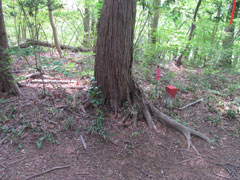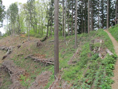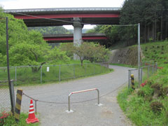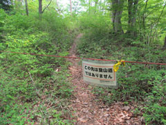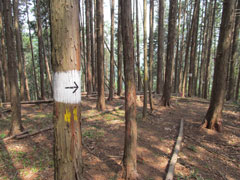 此処は登山道ではありませんの標識を抜けて尾根筋を直進する。少々周りの小枝が伸びて塞がれているが道筋はしっかりしている。直ぐに標高581mの大久保山に出るが視界は無し。暫くは右手下方の高速道路を走る騒音を聴きながら緩やかに下り、一端急斜面を降り僅かに登り返した所から高速道路に接近する様に下り不明瞭な急斜面を降ると小下沢林道に出られる。