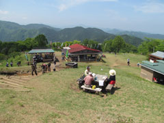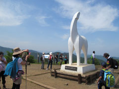 明王峠から陣馬山までの間は行き交う人が多く矢の音までの登山道とは対照的だ。陣馬山頂きは非常に多くの登山者で賑わっていて山頂の売店と下段にある売店も営業している。非常に展望の良い山頂の白馬の像が目立つ山頂からは富士山も微かに望める。今回は此処でビールで水分補給後山頂を降る。