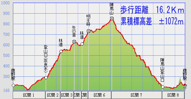 藤野駅8:40→吉野9:00→奈良本登山口9:25→矢の音11:00→明王峠11:40〜12:20→陣馬山13:00〜13:26→一ノ尾根→落合14:50→藤野駅15:20