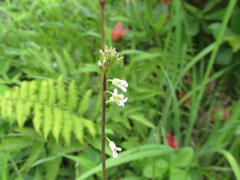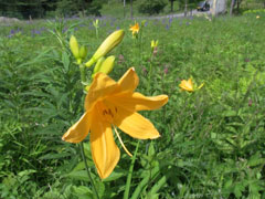 山頂駅の周りには、お花畑がありキキョウ、クガイソウ、シモツケ、アヤメ等見られる、ホテイアツモリソウの生殖地は盗掘防止用のネットで囲まれていて花が咲き終わったホテイアツモリソウを見る事が出来る。今年は気候の影響で花の時期が早かった様だ。往路を御所平に戻り帰路を辿る。