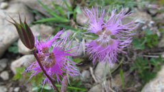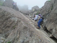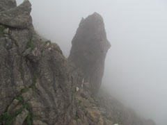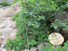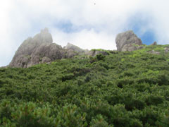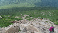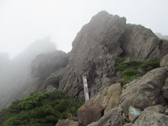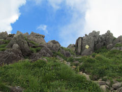 御座走岩(ござはしりいわ)、打石(ぶちいし)、千丈岩、と高度を上げて行くと同じバスに乗っていて小田越登山口から登って来て河原坊に降る登山者と行き交う。早池峰登山者の約7割が小田越から往復、2割が小田越から河原坊、1割が河原坊から小田越で稀に中岳から鶏頭山を越えて岳に降る、或いは北側の門馬に降るコースを利用する様だ。