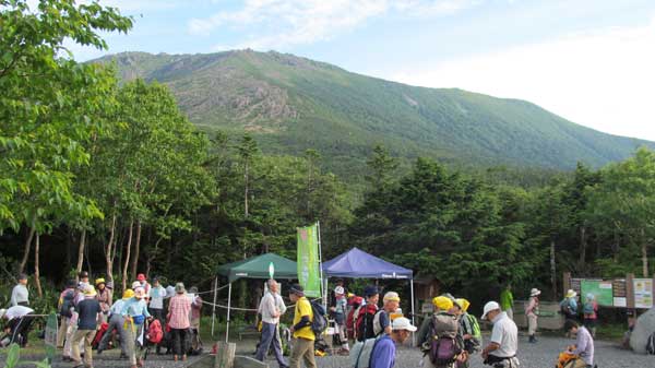 岳(シャトルバスの始発場所)に大きな無料駐車場があり朝5:30分から30分間隔でシャトルバスが運行していてマイカー登山者には都合が良い。大型バスでの団体登山の利用もあり土、日曜はバスも満員の様だ。小田越に泊まる予定で荷物も準備しているので左肩が重く感じて何度か休憩してはザックのベルトを調整する間に後から登って来た登山者に10名ほど追い越される。