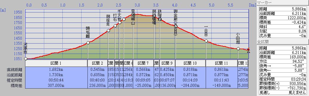 盛岡7:10⇒河原坊9:00→頭垢離10:58→千丈岩13:20→早池峰山14:15→御田植場14:40→御金蔵(五合目)15:22→小田越16:35→小田越山荘17:00(泊)