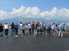 北アルプスの登山基地、新穂高温泉に初めて訪れる。ロープウェイが利用出来て体力のない私でも比較的楽に西穂高の稜線歩きが出来る事は有り難い存在だ。天候も非常に良くゴンドラで高度を上げて行くと山容の大きな笠が岳が目前に迫力ある姿を現す。山頂駅の展望台に上がって観ると多くの観光客が大展望に魅了されている。