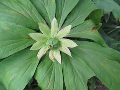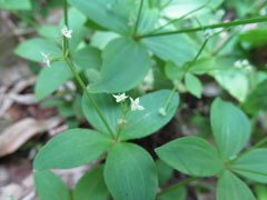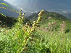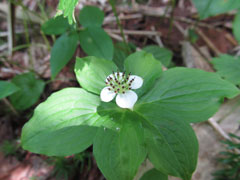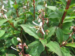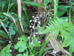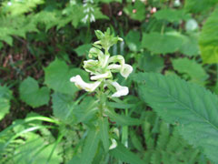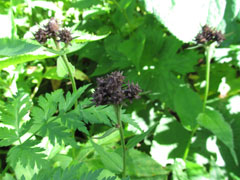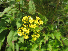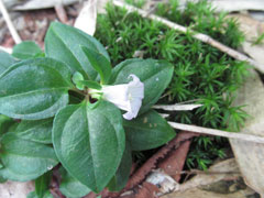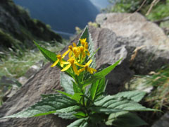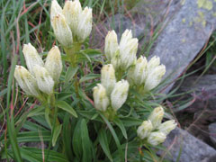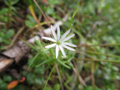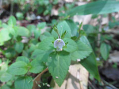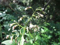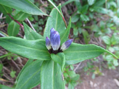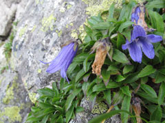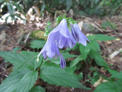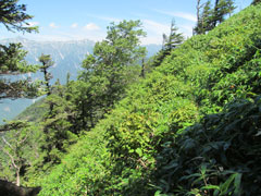 樹林帯の中で花もほとんど見られず、カニコウモリとツルリンドウは所々で見られる。槍見台と称するピークを登り詰めると東側が開けて明神岳や穂高岳は見えるが槍ヶ岳は見えず。水分補給で小休止後降って行くと松本に向かう途中の車から無線呼出しが有り今回最後の無線交信が出来る。西穂山荘を出て約2時間全く登山者には逢わずに来たので気持ちが楽になる。