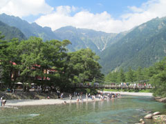 東京から来て中の湯から焼岳を登って来られた若い男女の登山者としばし話をしながら上高地に向けて降って行く。焼岳も百名山に入っているので新中尾峠(焼岳小屋)に登山者が多くいる事に納得する。上高地、穂高岳の先駆者ウェストン碑を拝見後、河童橋を渡ってバスターミナルに。非常に混雑していたが順調にバスにも乗れて新島々経由で松本に行き、特急あずさに乗車、燕岳から槍ヶ岳経由、穂高岳から上高地に降って来た方と同席になり山談義、八王子にてお別れして順調に帰宅できる。
