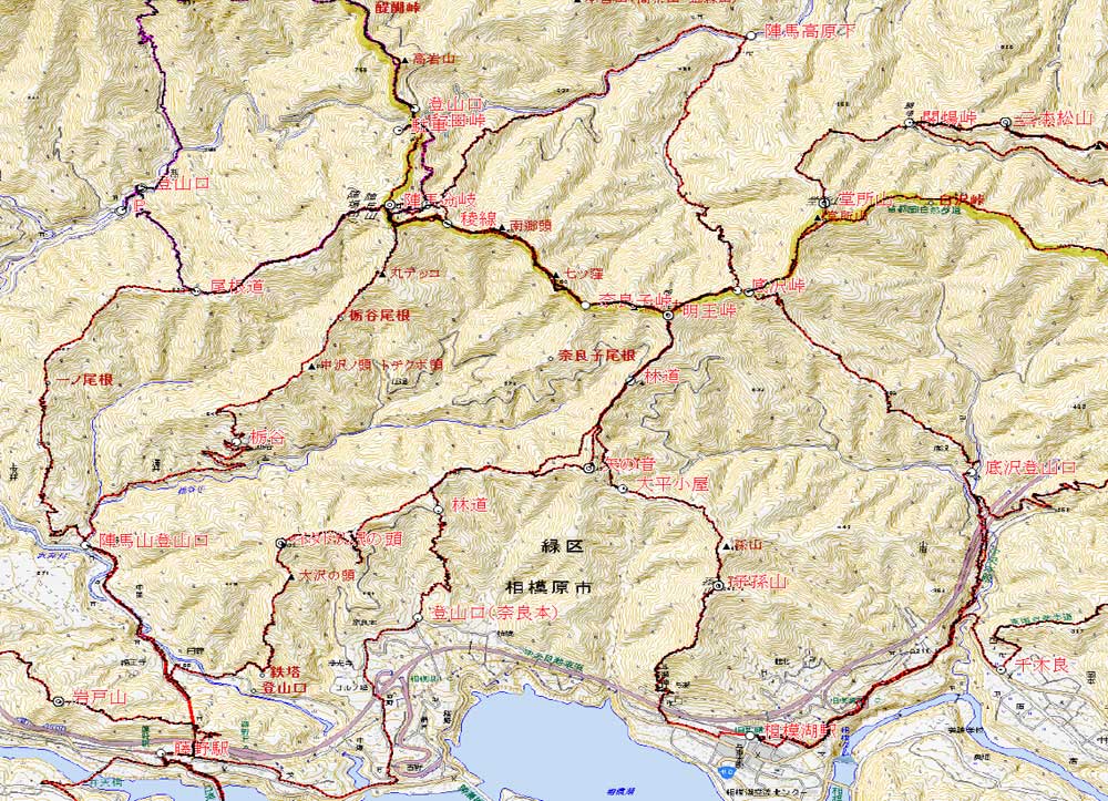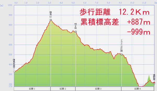 陣馬高原下8:55→陣馬山10:30〜11:30→明王峠12:00〜12:30→イタドリ沢ノ頭14:00→日野登山口14:58→藤野駅15:15