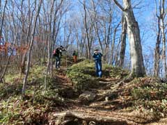 山頂は霜柱があり気温は0度程度で低いが風もなく穏やかな天気で寒さは感じない。楽しい昼食後はムシカリ峠から大滝を経由して(森林セラピーロード)都民の森Pに戻る。紅葉は既に終わっていたが爽やかな晩秋の青空の下大いにリフレッシュ出来る山歩きでした。