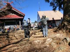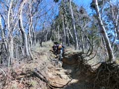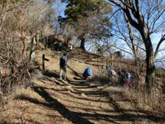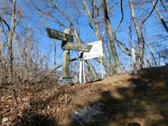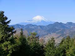 ヤビツ峠手前でバス2台とすれ違ったので登山者が多く来ていそうだ。さっそくヤビツ峠から大山目指して登山開始。この時期は葉は全て散っているので明るく枝の合間から富士山や丹沢が良く見える。足下は霜柱が続いているが雪の塊は全く見れれない。山頂間近の合流点では下社(ケーブルカー駅)からの登山者が多く登って来ていて賑やかになる。