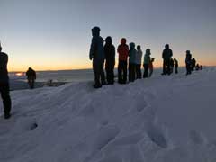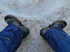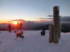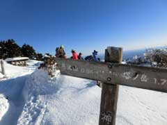 小丸分岐(稜線)では鍋割山を行き交う登山者が多くなる。稜線から脇に入って展望の良い所で軽い昼食を済ませてから大丸を越えて金冷やしで大倉尾根(メインルート)と合流して、登山者がさらに多くなる。此処でアイゼンとスパッツを装備する。太陽光に乱反射して輝く霧氷のトンネルを塔ノ岳への最後の急登をゆっくり確実に登り詰めて標高1491mの山頂に辿り着く。
