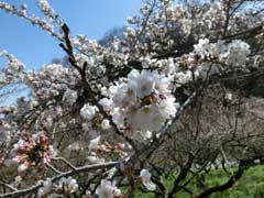 3日前の28日は日当たりの良い所でスミレの花が見られたが本日は道筋全体で花が見られる。また桜の花も3分咲きで青空の下何とも気持ちが良い山歩きが出来る。