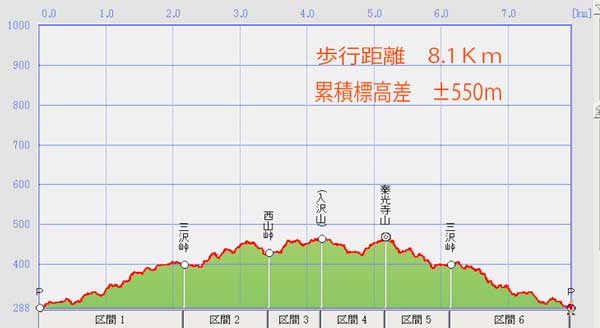 梅林P→三沢峠→西山峠→東山→入沢山戻り→西山峠→秦光寺山→三沢峠→梅林P