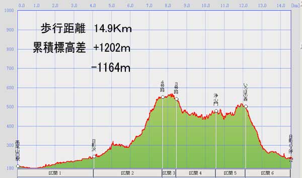 高尾山口駅→南浅川遊歩道→日影沢林道→逆沢作業道→5号路→3号路→4号路→いろはの森→日陰バス停