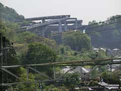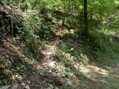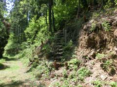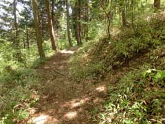 影信林道に入ると戻るような方向に傾斜のある林道となり左手下方に先ほど歩いて来た小下沢林道が見える。所々から北高尾山稜の山並みが目前に見えてきてかなりの所まで登って来た感じがする。途中右手斜面に階段があり稜線に続いて居る様だ。暫く行くと再び分岐の登山道があり。何れも景信山と堂所山の間の稜線に出る道筋の様だ。