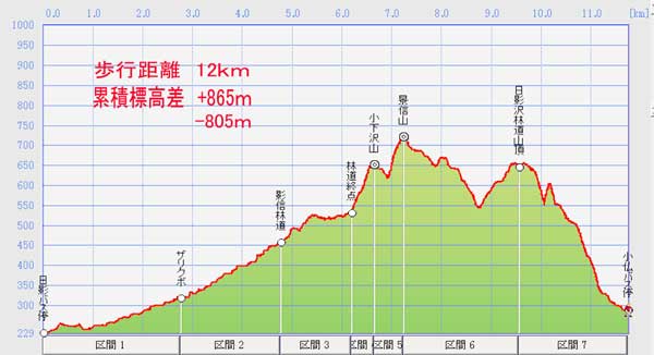 日影バス停→小下沢林道→景信林道→小下沢山→景信山→小仏城山→北東尾根→小仏バス停