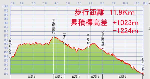 大垂水峠→小仏城山巻路→一丁平→富士見台→稲荷山コース→6号路→高尾山口