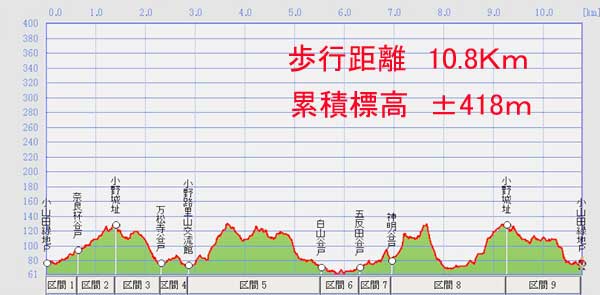 小山田緑地P→奈良杯谷戸→小野路城址→小野路交流館→白山谷戸→五反田谷戸→神明谷戸→小野路城址→小山田緑地P
