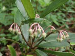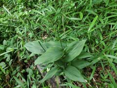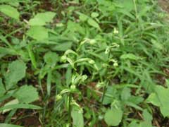 尾根筋から掌のように四方八方に延びる谷戸があり目的の花を探せずにいる時、写真を撮りに来た方と逢い花の咲いている場所を教えて頂く。ガイドマップには記載されていない位置なので聴いた方向に山道を行くが枝道が多く迷いそうだ。尾根筋にはトンボソウ、カラタチバナ、カモメズル、ヒメガンクビソウ等が見られる。一つ隣の谷戸を降り民家の有る所(尾根の鼻先)を巻いて目的の花がある谷戸の奥に入って行く。