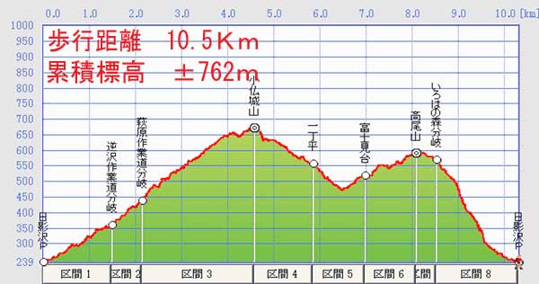 日影沢P→小仏城山→一丁平→富士見台→いろはの森→日影沢P