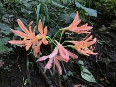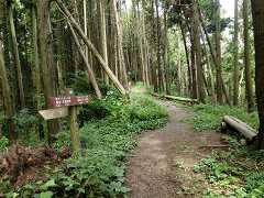 目的の花も多く見られて東山の手作りベンチで展望を楽しみながら小休止。丹沢、大山、左方面にはスカイツリーも霞んで見える。帰路は西山峠から降り、山下で国道20号に出て梅ノ木平からの林道に戻る。1Km1時間ペースで予想外に多くの花を見られ(50種るほど)達成感を味わえる。