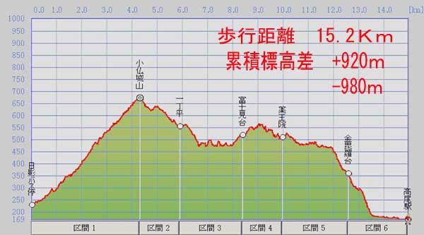 日影バス停→日影沢林道→小仏城山→一丁平→学習の路→5号路→1号路→金毘羅台→高尾駅