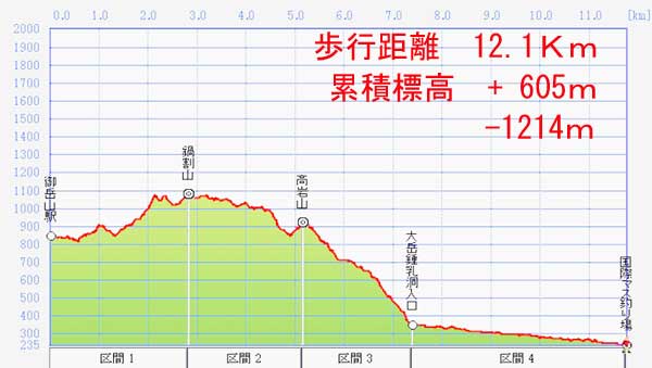 御嶽駅⇒滝本駅⇒御岳山駅→御嶽神社→奥の宮→鍋割山→芥場峠→展望台→高岩山→養沢神社→国際マス釣り場⇒五日市駅