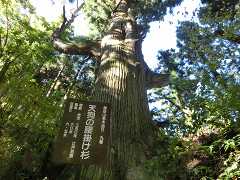 山頂駅から大岳山方面に向かって行き左手に日の出山への道を見送り、さらに階段上の御岳山神社も見送り長尾平に到着。紅葉が少し早いが紅葉のトンネルになっている。平坦な登山道を僅かに行くと天狗の腰掛け杉が有り手前から右手の登山道に入って奥ノ院に向かう。しばらく杉並木に沿って登って行き広葉樹林に変わるころ鎖場もあり、奥ノ院を通過した所に奥ノ院山頂の標識が有り、奥ノ院山頂を往復してくる。