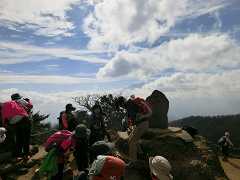 登山者で賑わう山頂(開運山) |