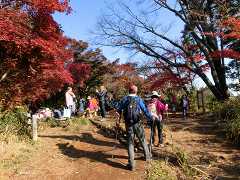 小仏城山、一丁平、もみじ台の紅葉を見ながら高尾山の鉢巻路(5号路)から4号路を通っていろはの森を日影沢に降る。高尾山直下の新しいトイレも長蛇の列で、4号路もいろはの森コースに入るまで行列になり大変賑やかな紅葉ハイクとなる。同行して頂いたFさん一丁平から合流したIさん、お疲れ様でした。