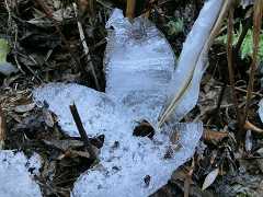 一丁平に来てみるとここでも人影が少なく数名の人が風を避けて休憩している。小仏城山からも富士山の展望が無し、氷華を見ながら日影沢林道のゲートまでショートカットし日影沢入口に戻る。同じコースを歩いていた1496さんと帰りにご一緒させて頂く。