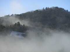 約90分、陣馬山頂に到着。富士山と同様に陣馬山山頂も時折雲が流れてきて視界を遮られるが直ぐにまた視界が開けて南アルプスの白い山並みも良く見える。今日は山歩きの楽しみの他にダイヤモンド富士を見た後、山花友と忘年会、足取りも軽く高尾に向かう。