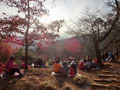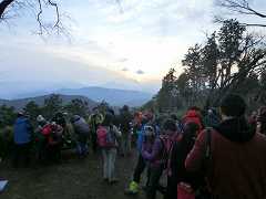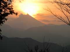 景信山、小仏城山、一丁平を過ぎて待合せ予定の紅葉台に登ると富士山にカメラを向けてシャたーチャンスを狙っている多くのカメラマンに少々驚く... Iさん、Oさんと合流後、富士山山頂に沈む太陽(ダイヤモンド富士)を見てからケーブルカーで下山後、忘年会で幾重にも楽しめた一日となる。