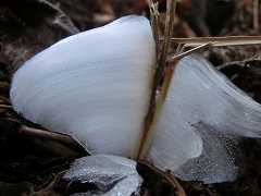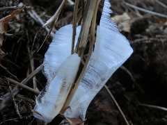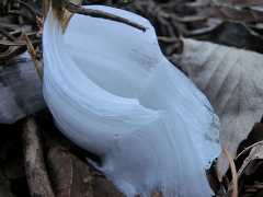 各所の氷華を見ながら小仏城山に登る。太いアカザ(植物)で作った杖を持って居いる方とお逢いしてしばし話し込み、いろいろ貴重な話お聞きながら一丁平まで同行させて頂く。紅葉台の北側巻路を通り逆沢作業道を降り日影沢に戻る。