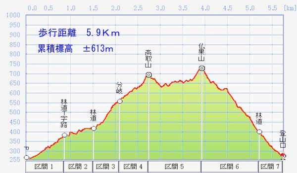 仏果山・高取山登山口→林道→高取山→仏果山→半原乗越→経ヶ岳→半原乗越