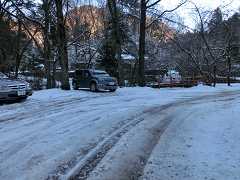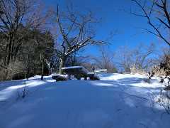 昨日降った雪で小仏城山山頂の積雪を期待して日影沢入口まで車で行く。先客が2台で楽に駐車できる。積雪5センチほどの日影沢林道を小仏城山目指して歩き始める。天気の良い土曜日なので前後に10名ほどの登山者が確認できる。