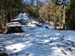 高尾山町を後に冨士道(車道)を薬王院、男坂を通って浄心門から4号路を高尾山を目指して戻り深山橋を渡りすぎた所で富士見台で行き交ったKさんと再度お逢いしてしばし高尾山の写真を見せて頂いたりする。雪の殆ど無いイロハの森を降り日影沢Pに戻る。