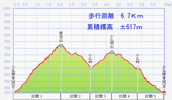 小仏峠登山口P→ヤゴ沢→景信山→小仏峠→小仏城山→小仏峠→小仏峠登山口P