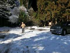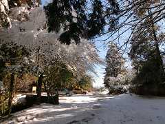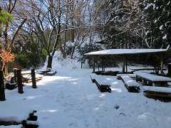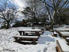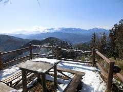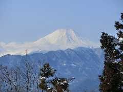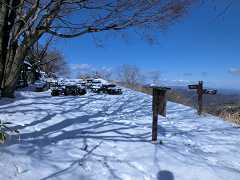 当初は小仏峠から降る予定でいたが時間も早いので小仏城山まで往復する事にして積雪は少ないが新雪を踏締めて小仏城山迄行く。先週も同じくらい雪が降って小仏城山まで来たが本日の方が陽に溶けるのが早いのか地肌が見えて居る所が有り。