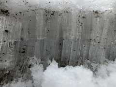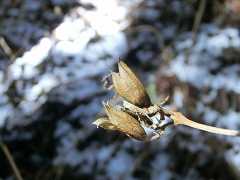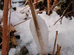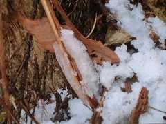 前回9月に歩いた時はジャコウソウ、ツリフネソウ、シモバシラの花が群生していた辺りでジャコウソウの花殻と雪に混ざりシモバシラの氷華も観る事が出来る。