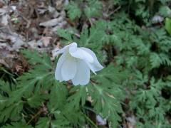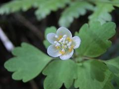 南高尾山稜の2つの沢を巡るコースを歩いて来る。梅ノ木平林道からスタートして国道に戻って山下から西山峠に向かう。道路際にはニリンソウが終盤でイチリンソウやヤマブキソウも咲いている。山道に入って植林帯の中、沢に沿って登って行く。