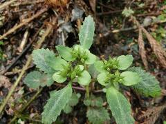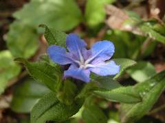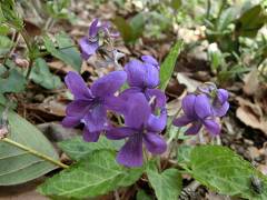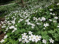 最後の橋(木製)を渡り沢の源流を登って行くと斜面はニリンソウの白い花で埋め尽くされている。里ではニリンソウが終わりヤマブキソウが咲いていたが山の上の方ではニリンソウが満開だ。此処で1時間ほど花見休憩後、西山峠に上り泰光寺山山頂で昼食にする。スミレやフデリンドウを見ながら三沢峠に向かう。途中のベンチで地元の方2名に色々貴重な話を聞かせて頂く。
