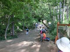 沢沿いの路は意外と涼しく予想外に人が少なくのんびり歩ける。萩原作業道から一丁平に行くと、流石に多くの登山者で賑わっている。一丁平からは巻路で高尾山頂駅まで行き40分ほど待たされたがケーブルカー利用で清滝まで降る。