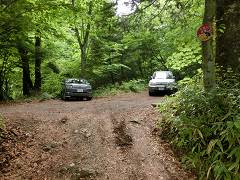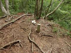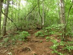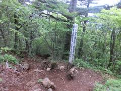 此処から清八林道に降る近道があるようだが正面のコブ、ヤマナ沢の頭を越えて清八林道終点(清八山登山口)に出る。