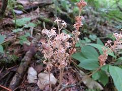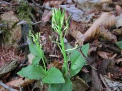 中間地点の休憩ベンチ辺りからは足元にヒメムヨウランが多く見られ、