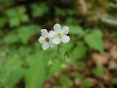 我々も同様で今回は林道と平行する登山道に咲く花を探しながらゆっくりと登る。林床にはツルシロガネソウ、ササバギンランが丁度見ごろで撮影しながら行く。