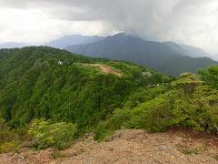 御巣鷹山からは急斜面をどんどん下って行き振り返えると御巣鷹山の電波塔を見上げる様になる。茶臼山を越えて僅かに降り大幡山を超えて下って行くと鉄塔のある広場に出る