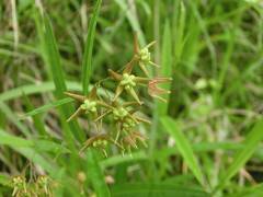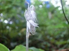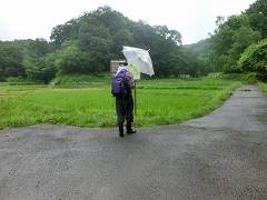 明るくなった尾根筋の路を登って行くと偶然にもNAさんと行き交う。路に迷って降って来た様なのでNAさんと同行のSAさんと3名で花巡りする。おかげで一人では見られなかった花も見られる。終盤は雨が降って来たが晴れていては咲かない花も見られて恵みの雨の降る中、帰路を辿る。