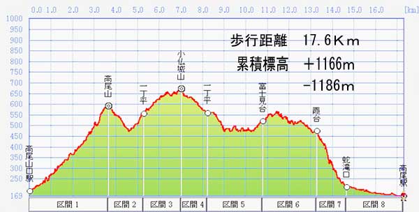 日影沢→小仏城山→一丁平→大平林道→5号路→4号路→いろはの森→日影沢