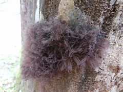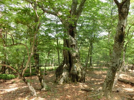 帰りのバスの時間もあり展望所まで往復を迷ったが折角来たのだから展望所まで登る事にする。昨日登った大蛇ーが目前に見えるが少々霞んでいて人の姿まで確認できず。直ぐに展望所を引替しミズナラの巨木を写真に収め分岐点まで戻る。吊橋を二つ渡り終わるとガレ場の登りが待っている。