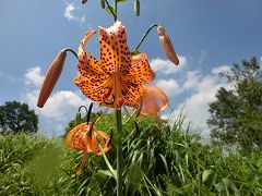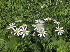 周りに咲く花を見ながらゆっくり登っても40分ほどで山頂に着く。やはり遮る物が無い山頂は見晴らしは良いが直射日光が降り注ぎ暑いが風が抜けて行くので暑さが幾分和らぐ。山頂付近を散策後木陰で涼風に吹かれながら昼食にする。この暑さでも登山者が数名登って来ていて茶店も2件営業している。食後は明王峠方面に行き分岐点から往路に出て戻る。